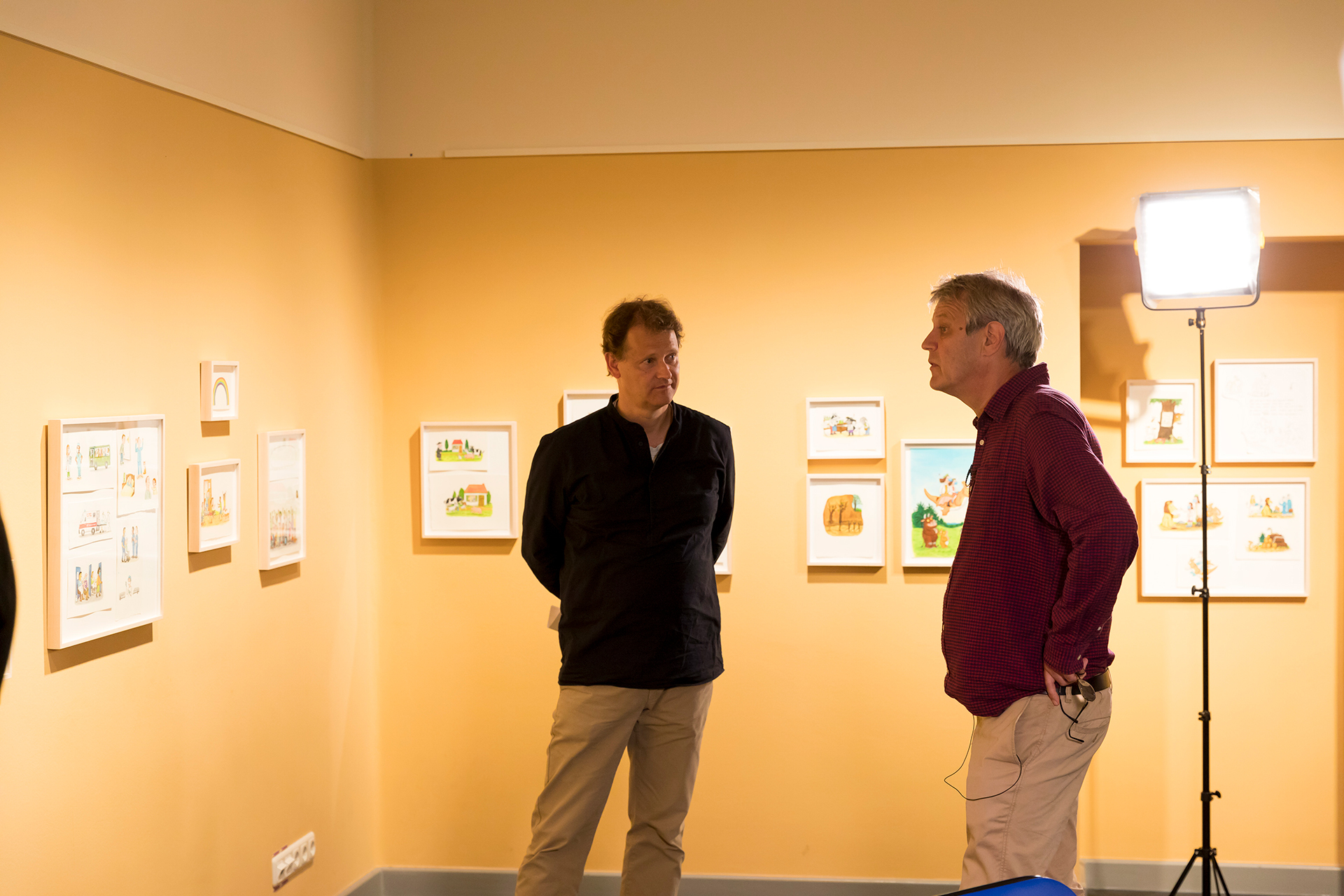 Wie so oft im Leben brauchten wir ein bisschen Glück. Wir haben uns entschieden, Professor Philipp Osten, den Direktor des Medizinhistorischen Museums am UKE, anzurufen, um zu erfahren, ob er Interesse und Unterstützung für ein solches Projekt haben würde. Wir wussten, dass Ausstellungen oft Jahre im Voraus geplant waren und Ressourcen, Personal und Organisation erforderten. Wäre es möglich, uns reinzuquetschen? Die Antwort, die wir erhielten, hätte nicht besser sein können! Wie sich herausstellte, waren Osten und sein Team mitten in der Vorbereitung einer großen Ausstellung zum Thema «Pandemie: Rückblicke in die Gegenwart» und waren begeistert, Axel Schefflers Zeichnungen in die Ausstellung in einem eigens dafür gestalteten Kinderzimmer einzubauen.